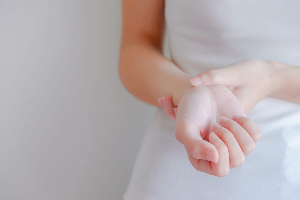 自律神経失調症になると、手首周りの筋肉の緊張や血行不良が原因で手首の痛み・手のこわばりなどの症状が現れることがあります。