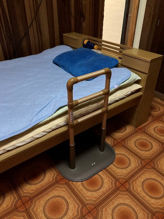「元々使っているベッドに手すりがあれば…」という方には、据え置き式の手すりの設置がお勧めです。→