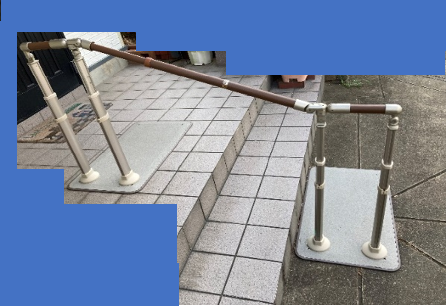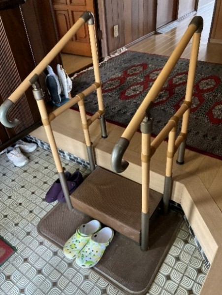←上がり框の高さ解消をするための据え置き式の手すりと、踏み台です。